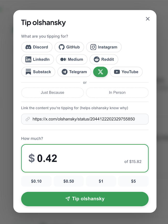 - 💸 Tip you for a piece of content they saw online